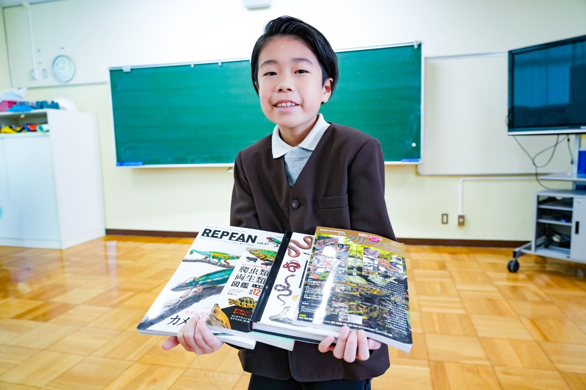 さて、翔汰朗さんは、数々のピアノコンクールに出場し、「詩」でも表彰されるなど、先生たちも「実に多才」と表する小学生です。そして極め付けは、自宅では多い時で100種類、1,000を超える、「昆虫や蛇・トカゲなどの爬虫類、さらにミーアキャット、猫、モモンガ、ネズミなどの哺乳類までさまざまな生き物を飼育しています」と翔汰朗さん。その中には絶滅に瀕している生き物を飼育し、その生態とともに生き物たちの成長の様子を自由研究としてまとめるなど研究活動にも心血を注いでいます。