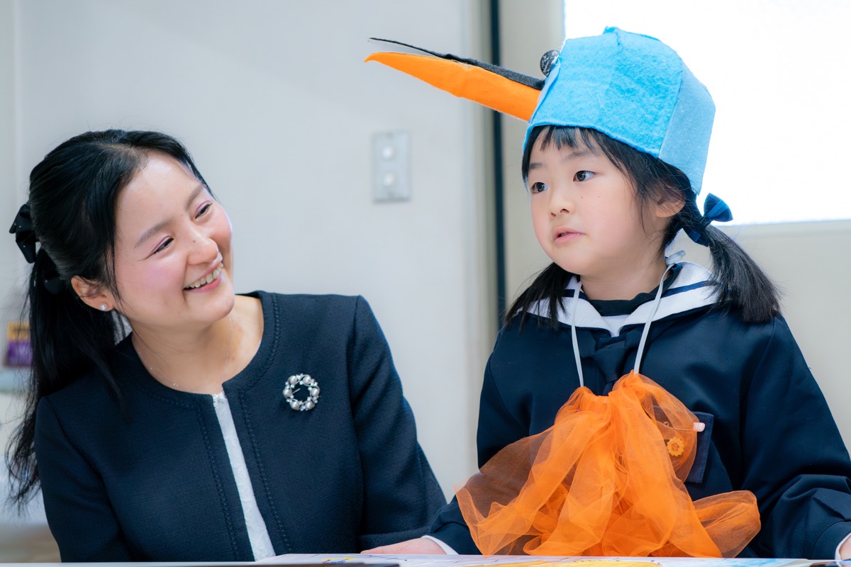 また通っている幼稚園では、近くの清水川での生き物探しや卵からの飼育観察など、実体験を重視した取り組みを大切にしています。今年7月の園の行事、夏祭りでは、水族館のように色々なおさかなや昆虫を展示し、子どもたちが解説する催しを開催。奏さんは自作のカワセミの衣装を身にまとい、カワセミ解説員を務めました。今回の表彰式でも、その思い入れのあるカワセミの衣装で臨んだほどです。