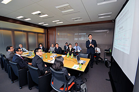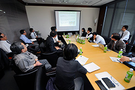 11月2日(金)、東京・丸の内にて今年度5回目の中間報告会を開催しました。今回は、研究チャレンジャー第6期生の牛山潤一さん、門田浩二さん、佐藤幸治さん、寒川美奈さん、吉武康栄さん、そして外国人留学生のフィゲロア ゴンザレス イポリト ラファエルさん(メキシコ)が参加しました。