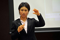 9月9日(月)、東京国際フォーラムにて平成25年度 第1回目の中間報告会を実施しました。今回は、体験チャレンジャーの小林由貴選手(第7期生・スキー/クロスカントリー)、田中幸太郎選手(第7期生・レスリング)、日置千耶子選手(第7期生・スキークロス)、海外留学生奨学金の言上智洋さんが出席しました。
