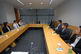 10月21日(月)、東京・丸の内MY PLAZAにて平成25年度 第3回目の中間報告会を実施しました。今回は、研究チャレンジャー第7期生の寺田新さん、東田一彦さん、福原和伸さん、若林斉さん、体験チャレンジャー原田小夜子選手(セーリング/選手)に加え、OBチャレンジャーの鈴木浩太さん(研究6期生)と金ウンビさん(外国人留学生奨学金4・6期生)の7名が出席しました。研究チャレンジャー5名と留学生の金さんからはチャレンジ目標に対する研究の進捗報告が、また体験チャレンジャーの原田選手からはリオ五輪出場に向けた上半期の活動報告が行われました。
