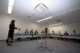 10月18日(土)、ABCアットビジネスセンター(東京都)にて平成26年度 第4回目の中間報告会を実施しました。この日は体験チャレンジャーの藤田拓哉さん(モーターサイクルレース/選手)、小林由貴さん(スキー・クロスカントリー/選手)、田中幸太郎さん(レスリング・フリースタイル/選手)、佐々木陽菜(フェンシング・サーブル/選手)、研究チャレンジャーの内田若希さん、江島弘晃さん、平山邦明さん、内田昌孝さん、大林太朗さん、外国人奨学生のソン・ボギョンさんの合わせて10名が参加しました。