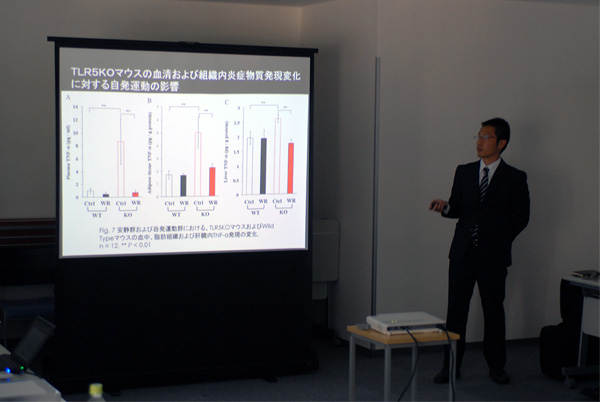 肥満を呈すると肝臓に脂肪が蓄積、脂肪肝の症状を呈することが知られている。第2四半期では、タンパク質レベルでの変化をとらえることにチャレンジし、マウスの肝臓の組織染色を行って肝臓の脂肪蓄積を評価した。その結果、遺伝子変異マウスは野生型マウスに比べて肝臓への脂肪の蓄積が観察された。しかし、自発運動を行わせた群では遺伝子変異マウスにおいて肝臓CD36発現が低下する傾向が観察されている。第1四半期に外注した次世代シーケンス解析については現在報告を待っている状況。これについては成果報告会で報告したい。