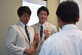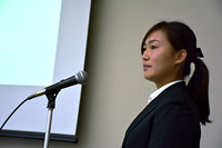 10月7日(金)、御茶ノ水ソラシティカンファレンスセンター(東京都)にて平成28年度 第3回目の中間報告会を実施しました。この日、報告を行ったのは、体験チャレンジャーの八木愛莉さん(カヌー・スラローム/選手)、三浦優希さん(アイスホッケー/選手)、研究チャレンジャーの高倉久志さん、松田太希さん、水野貴正さん、鷲谷洋輔さん、そして外国人留学生奨学金のフィンク・ジュリウスさんの合わせて7名。海外でチャレンジ中の三浦さんは事前に録画されたビデオで、鷲谷さんはSkypeで報告を行いました。