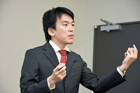 10月15日(土)、御茶ノ水ソラシティカンファレンスセンター(東京都)にて平成28年度 第5回目の中間報告会を実施しました。この日、報告を行ったのは、体験チャレンジャーの藤原祐志さん(馬術/競技役員)、スポーツチャレンジNEXTの上垣光さん(障害者スポーツ・水泳/選手)、古畑海生さん(障害者スポーツ・水泳/選手)、研究チャレンジャーの池戸葵さん、進矢正宏さん、林洋輔さん、そして海外留学生奨学金の関口泰樹さん(アメリカ留学中のためSkypeで参加)の合わせて7名。それぞれ上半期の活動を振り返るとともに、自ら掲げた目標の進捗や取り組みの課題を確認・報告しました。