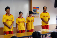 7月21日(日)、特定非営利法人 日本ライフセービング協会のインストラクターを迎え、恒例の水辺体験学習「水辺の安全講習会」を実施、スクールの生徒とその保護者、事務局あわせて37名が参加しました。この体験型講習会は、水辺に親しみながら安全確保の知識や技術を身につける海洋教育の一環として毎年夏休みのはじめに行っており、講習を通じて「人の命、自分の命を守る」ために必要な知識と技術に加え、「助ける」「助けを求める」など、行動する勇気の大切さについて学びました。