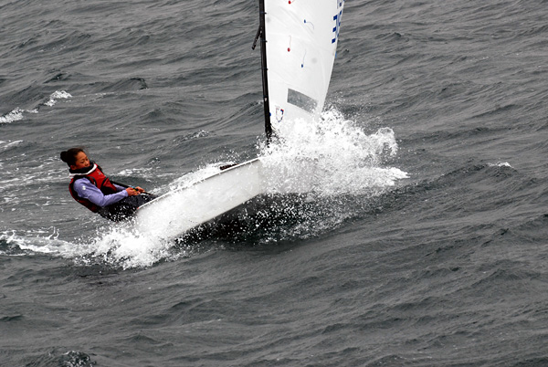 保護者の皆さんが見守る中、この日は一年間の練習の成果を披露する修了レースでスタート。気温も低く、8〜10m/秒という強い風が吹く中、観戦用の遊覧船からの声援を受けて日ごろ磨いた技術を競い合いました。また、午後からは保護者懇談会を開き、平成26年度のスクール活動を振り返るとともに、4項目(体・心・技・知力)の成長を総合的に評価した個別の通信簿を渡しました。