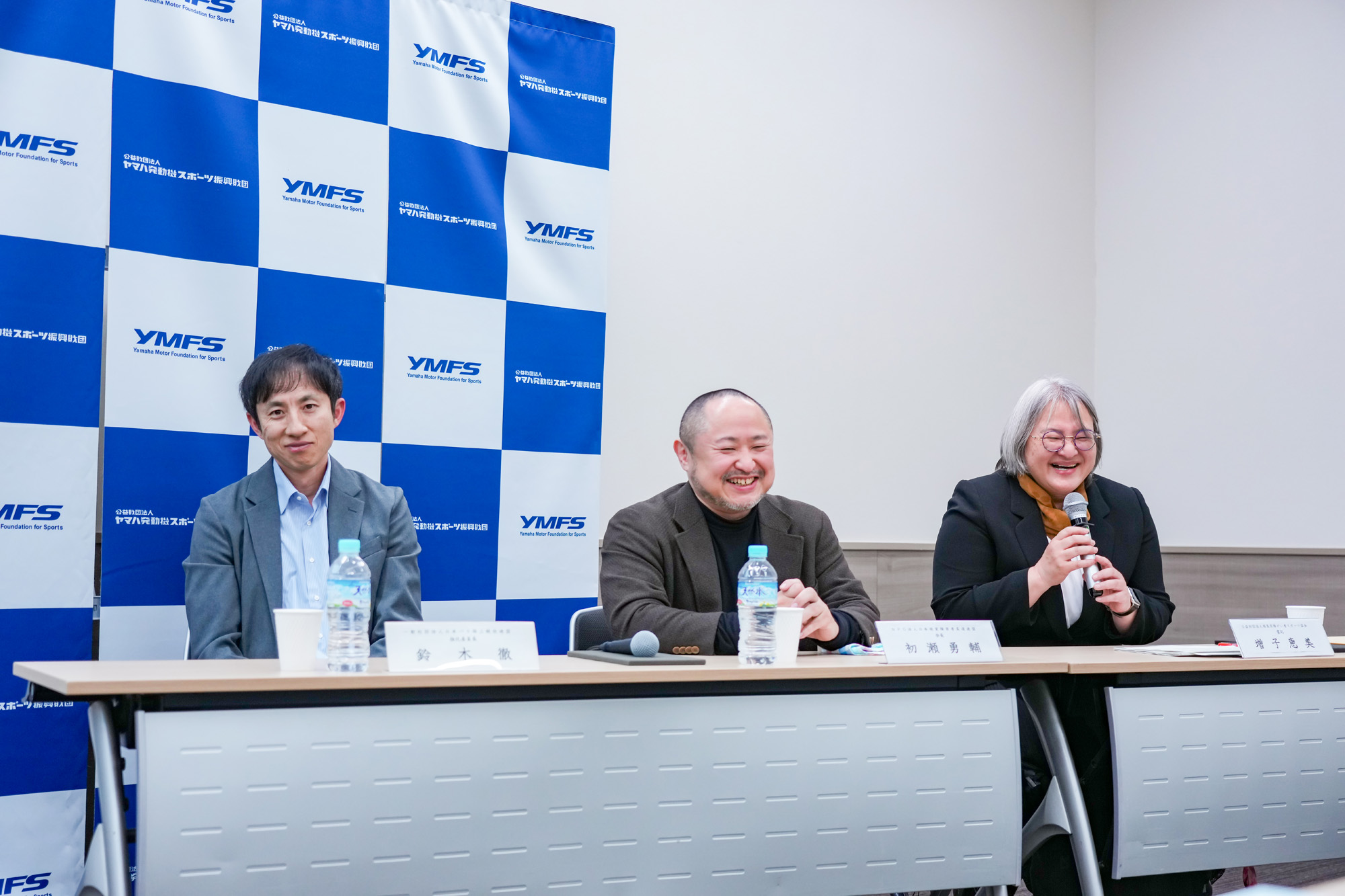 そしてパネルディスカッションは、2015年に当財団のスポーツチャレンジ助成第9期生であり、シドニー・アテネ・北京・ロンドン・リオ・東京パラリンピック走り高跳び6大会連続で入賞した鈴木徹さん(一般社団法人日本パラ陸上競技連盟 強化委員長)。北京パラリンピック柔道90kg級出場、全日本視覚障害者柔道大会90kg級7連覇、81kg級2連覇の初瀬勇輔さん(NPO法人日本視覚障害者柔道連盟 会長)。アトランタ、シドニー、アテネ、北京パラリンピックの車いすバスケットボール4大会連続出場、シドニー大会では銅メダル獲得された増子恵美さん(公益財団法人福島県障がい者スポーツ協会 書記)を迎えて実施しました。