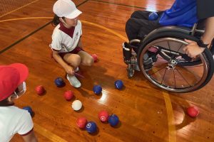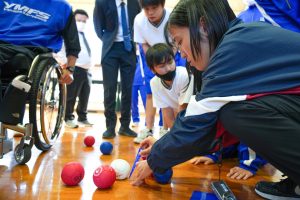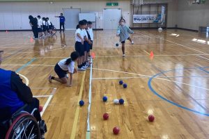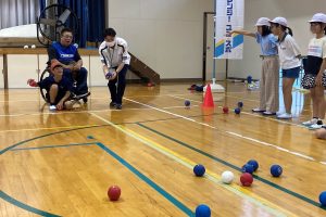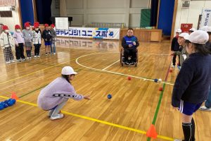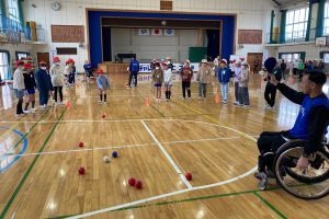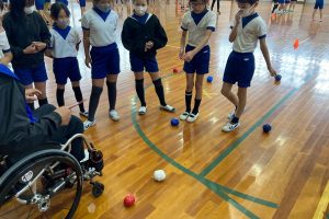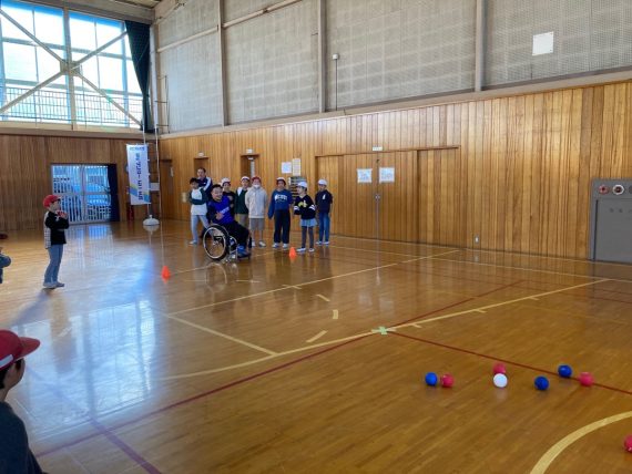 年度別訪問先一覧 2024年度 訪問先 目次 Toggle 静岡市立清水岡小学校御前崎市立浜岡東小学校焼津市立大井川南小学校河津町立河津小学校浜松市立新原小学校浜松市立引佐北部中学校浜松市立北浜小学校浜松市立和田東小学校函南町立函南中学校磐田市立青城小学校 静岡市立清水岡小学校 実施日時 10月3日(木)13:35~15:10 参加者 78名/小学4年生75名(うち障害児2名)、教員3名 教科 総合(福祉) 応募目的 総合的な学習で福祉について学んでいる。今年行われるパラリンピック種目でもある、ボッチャの体験を通して、ユニバーサルスポーツに興味を持ち、福祉についての視野や見分を広げる機会とするため。 御前崎市立浜岡東小学校 実施日時 10月17日(木)9:10~11:00 参加者 55名/小学4年生49名(うち障害児3名)、教員6名 教科 総合(福祉) 応募目的 総合的な学習で、みんなが楽しめるスポーツについて調べています。実際に体験できるので申請します。 焼津市立大井川南小学校 実施日時 11月8日(金)13:30~15:10 参加者 56名/小学5年生52名(うち障害児1名)、教員4名 教科 体育 応募目的 体育の「体づくり運動」の導入として実施したい。その後、校内にあるボッチャを通して、心と体の関係に気付いたり、仲間と関わり合ったりさせたい。また、総合的な学習の時間(福祉)にもつなげたい。 河津町立河津小学校 実施日時 11月13日(水)10:00~11:40 参加者 48名/小学4年生41名(うち障害児1名)、教員7名 教科 総合(福祉) 応募目的 総合的な学習の時間で福祉について学んでいる。今年度はパラリンピックも開催され、障害者スポーツについて、直に触れる機会もある。障害者スポーツへの理解を深めるため、ユニスポを希望する。 浜松市立新原小学校 実施日時 11月19日(火)13:35~15:15 参加者 67名/小学4年生63名(うち障害児5名)、教員4名 教科 総合(福祉) 応募目的 ユニバーサルスポーツについて理解を深めるとともに、より身近に感じることができるようにすること。みんなが楽しむことができるようにするための工夫について知る。 浜松市立引佐北部中学校 実施日時 11月22日(金)13:15~15:05 参加者 42名/中学1-3年生33名(うち障害児1名)、教員9名 教科 体育 応募目的 本校には車椅子を使って生活している生徒がいます。みんなが楽しめるスポーツ、みんなが楽しめる体育の授業を日頃から生徒自身で考え、取り組んでいます。ぜひ、ユニバーサルスポーツとしてのボッチャを生徒たちに体験してもらいたいと思い、申し込みさせていただきました。 浜松市立北浜小学校 実施日時 11月25日(月)13:35~15:15 参加者 108名/小学4年生104名(うち障害児8名)、教員4名 教科 総合(福祉) 応募目的 障害の有無に関わらず、体を動かすきっかけとしてもらったり、ユニバーサルスポーツの学習として、学びの機会にしたりしたいと考えたため。 浜松市立和田東小学校 実施日時 11月29日(金)13:20~15:00 参加者 52名/小学4年生49名(うち障害児2名)、教員3名 教科 総合(福祉) 応募目的 総合的な学習「だれにでもやさしい社会」の学習で、福祉について体験できると学びが深まるため。 函南町立函南中学校 実施日時 12月4日(水)13:20~15:00 参加者 151名/中学1年生143名(うち障害児6名)、教員8名 教科 総合(福祉) 応募目的 総合的な学習で共生社会の実現をテーマに学習に取り組んでいます。パラスポーツを通して、障がい者の理解を深めたいと考えており、ボッチャをその一つの種目としているため。 磐田市立青城小学校 実施日時 12月13日(金)10:25~12:05 参加者 87名/小学4年生84名(うち障害児1名)、教員3名 教科 総合(福祉) 応募目的 総合の時間に車イスユーザーの方からボッチャの話を聞き、子どもたちもボッチャに興味を持っているため。